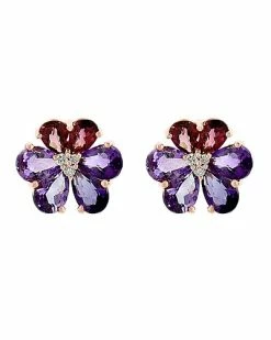 Effy Fine Jewelry 14K Rose Gold 6.72 Ct. Tw. Diamond & Amethyst & Pink Tourmaline Earrings Women